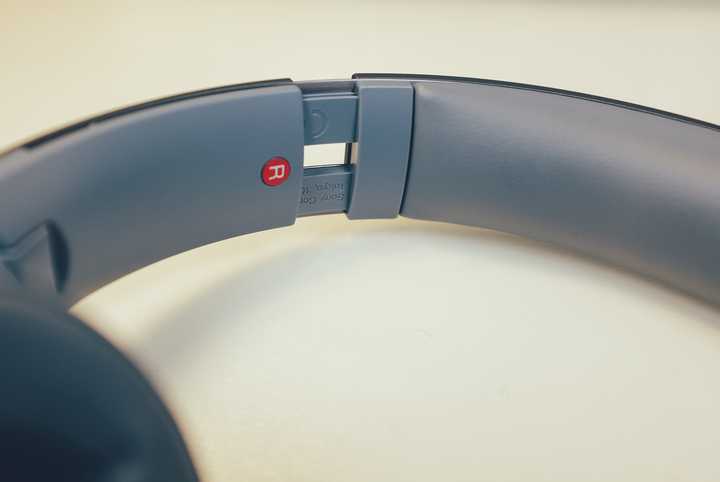 H600A的头梁垫较短,而拉伸杆的位置也不同于一般的头戴耳机,位于头梁斜上部,拉伸杆在拉动时刻度感明显,但不是很顺滑,耳机的左右标识也位于此处。